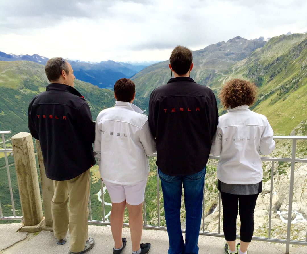 We are 2 couples who are Tesla owners and who met at a Tesla Road Trip in May 2016 in Williamsburg, Virginia. With much in common, but most importantly sharing a love for Tesla, its mission, and everything it stands for, we hit it off and started planning vacations together. What better way to merge our interests in travel, hiking, and adventure with our passion for electric vehicles (EV) and green energy than to vacation in Switzerland, driving around the alps in a rented Tesla Model S, quietly accelerating in spacious luxury while having fun and leaving no local emissions in that beautiful environment.
